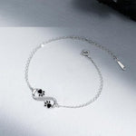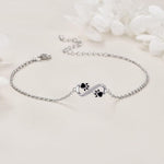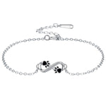 Célébrez le lien indissoluble entre vous et votre compagnon à quatre pattes avec notreBracelet avec symbole infini et breloque patte. Ce bracelet délicat, confectionné avec une grande attention aux détails, scintille dans des tons argentés élégants avec un symbole de l'infini brillant orné de zircones scintillantes et de deux jolies pattes – un hommage touchant à l'amour et à la fidélité éternels.