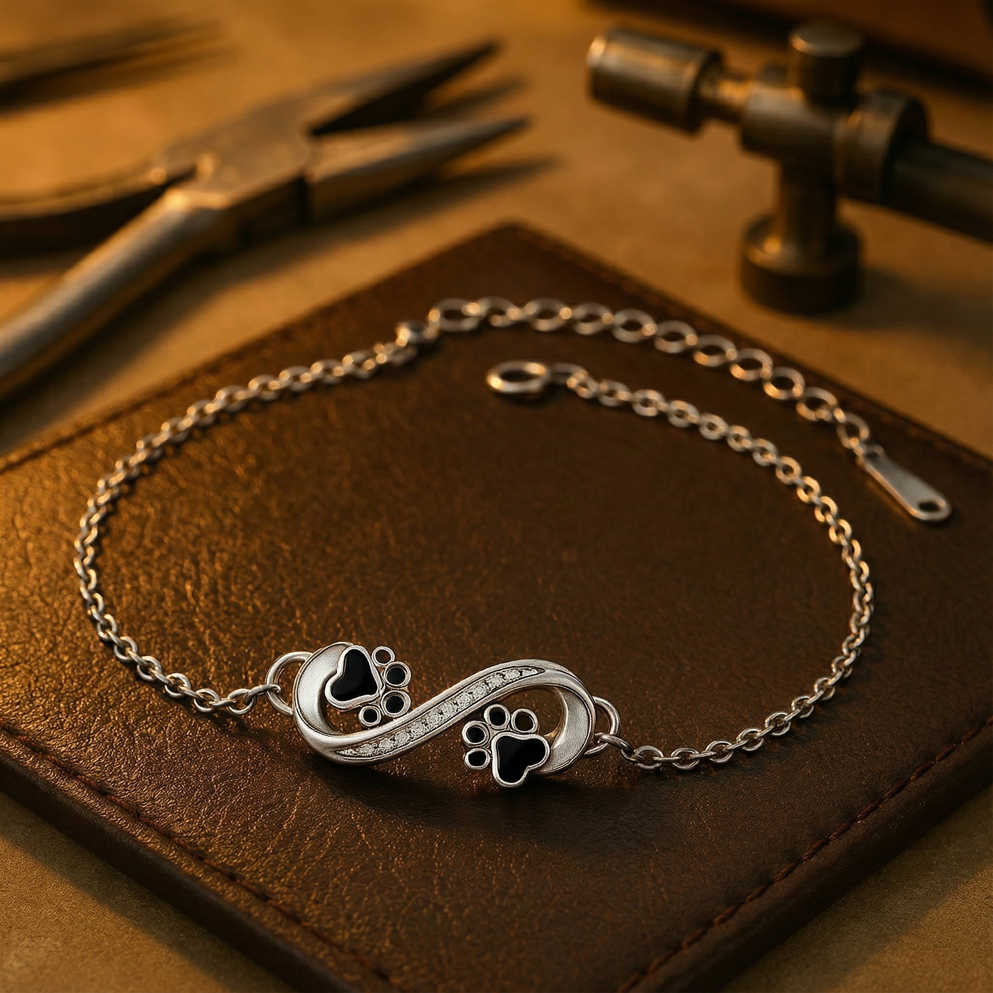 Le symbole de l'infini signifie « pour toujours » – et les pattes en émail noir font de ce bracelet un bijou intemporel pour tous les amoureux des animaux. Que ce soit comme souvenir, cadeau ou signe de connexion quotidien, ce bracelet parle directement du cœur.